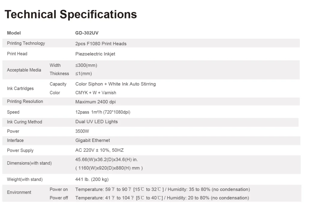 These machines typically feature Epson printheads (like i3200 or i1600), resolutions up to 1440×2880 DPI, and speeds of 5-10 m2/hour depending on passes. They support CMYK+White+Varnish inks, print widths from 30-60cm, and integrated UV LED curing for 3D effects. Power needs are around 1500W at 220V, with sizes fitting small workshops (e.g., 188x95x159 cm, 300kg).
