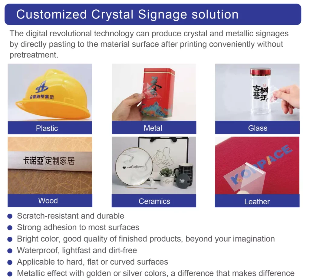 UV DTF printers use UV-curable inks to print vibrant designs, white ink, and varnish onto PET film, creating instant-cure stickers for hard surfaces like metal, glass, wood, and some textiles.